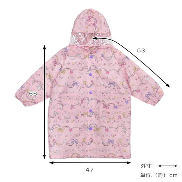 レインコート キラキラガーランド キッズ 130cm 雨具 ( カッパ ランドセル対応 子供 幼児 通園 通学 小学生 女の子 かわいい かっぱ 合羽 梅雨 保育園 幼稚園 小学校 レイングッズ 透明窓 )