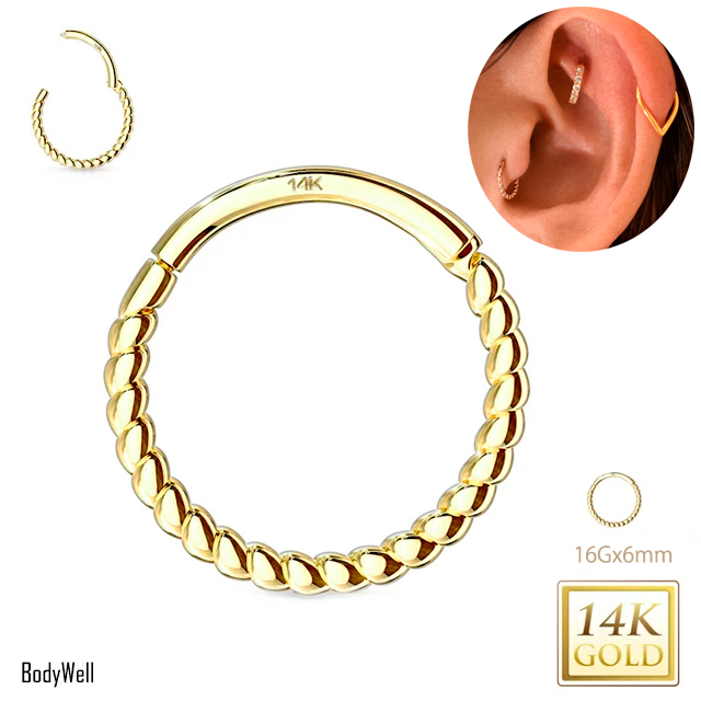 K14 16g 14金ゴールド 内径6mm ツイスト ワンタッチピアス 14K セグメントリングピアス クリッカー リングピアス ロブ 軟骨ピアス トラガス ロック ボディピアス