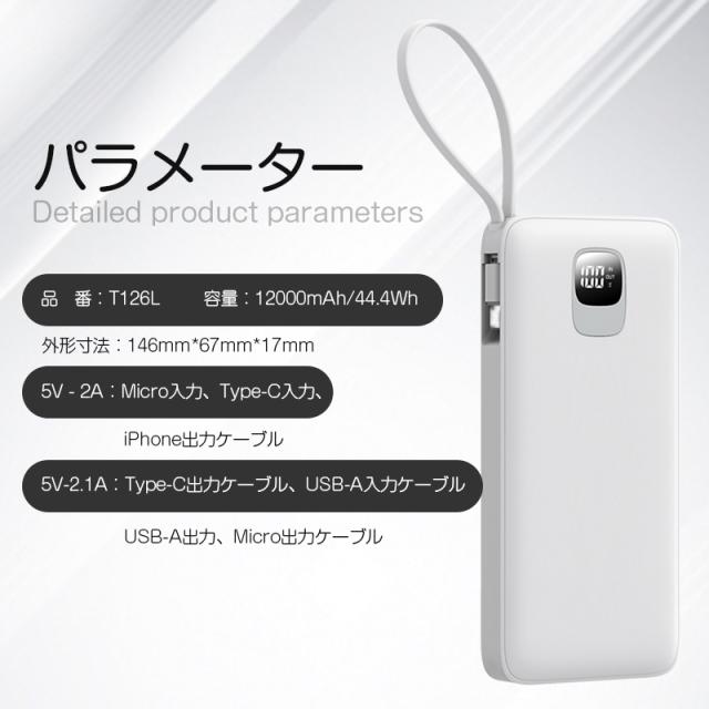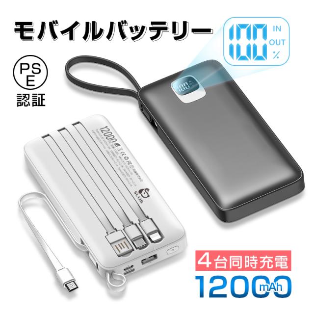 モバイルバッテリー 12000mAh iphone type-c micro USB-A 出力 iPhone17/16/15充電 防災電源 旅行 出張 通勤 通学 停電対策 PSE認証 日本語取扱説明書 【PL保険加入済み製品・安心】