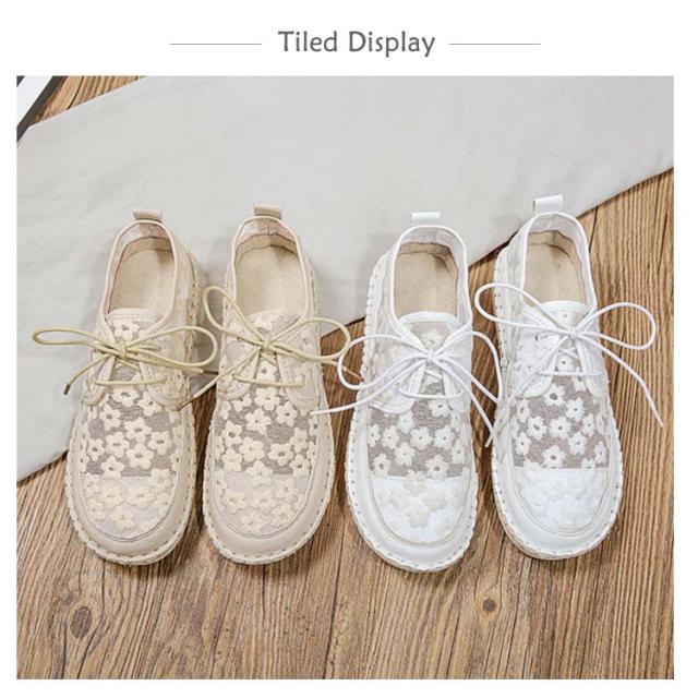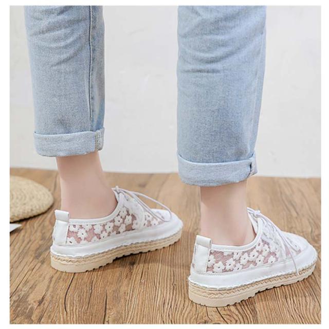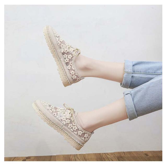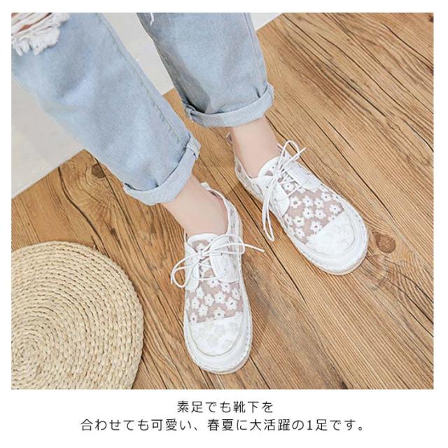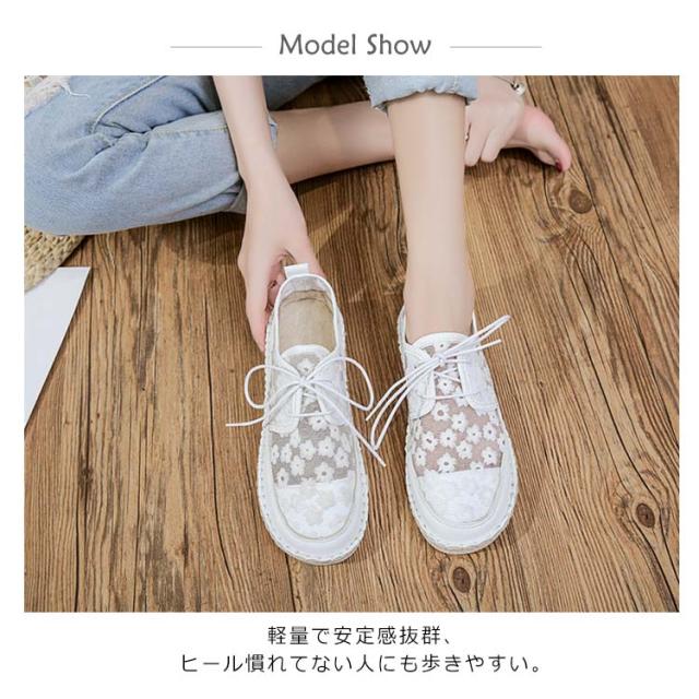 スニーカー レディース シューズ 靴 スリッポン レース 花柄 キャンバス 透け感 通気性 耐摩耗性 滑り止め ローヒール フラット 疲れない 歩きやすい 森ガール シンプル シューズ カジュアル 通学 通勤 旅行 ホワイト ベージュ 春 夏 22.5-25cm