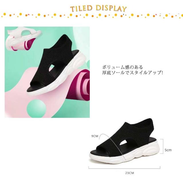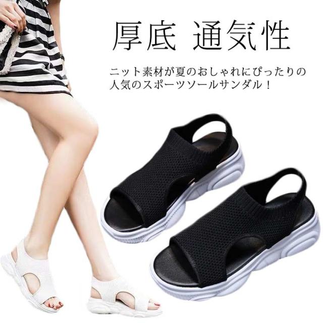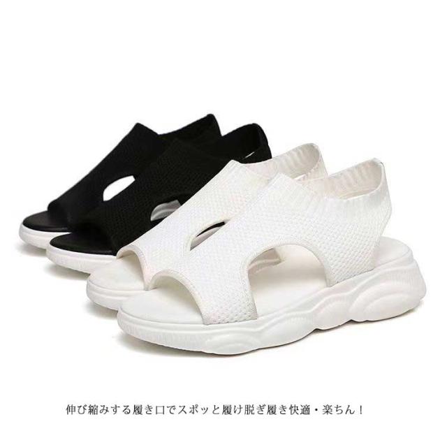 サンダル レディース ニット デザイン 厚底サンダル スポーツサンダル メッシュサンダル スニーカー ビーチサンダル 通気性 美脚 ウォーキングシューズ 婦人靴 オープントゥ シューズ 靴 歩きやすい 疲れにくい 快適