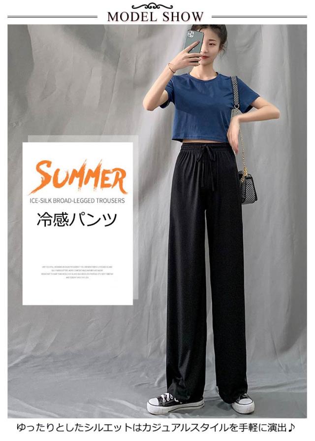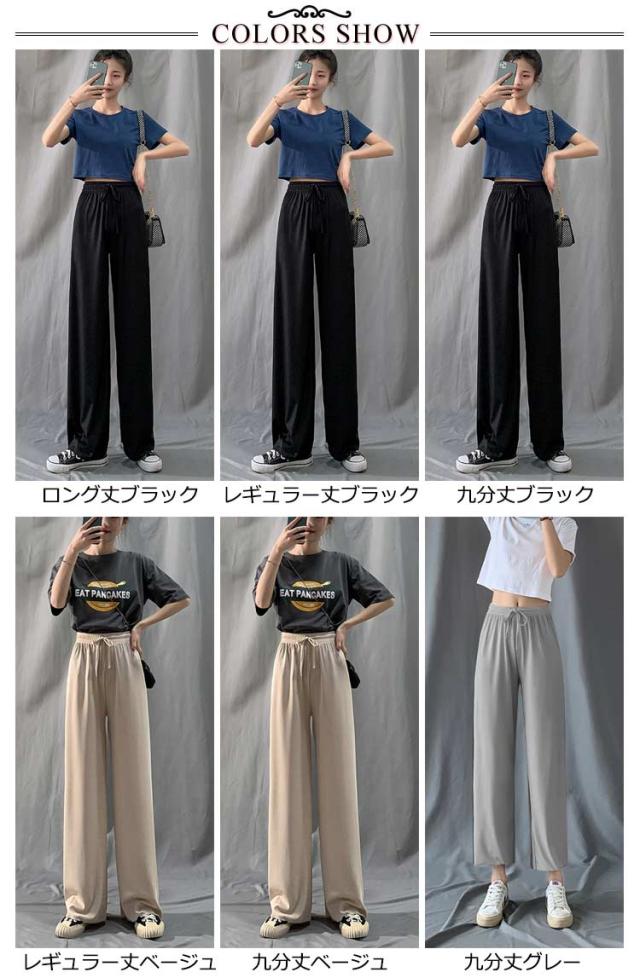 送料無料 レディース 冷感パンツ ワイドパンツ レディース ガウチョパンツ 接触冷感 キレイめ 九分丈 マキシ丈 10分丈 レギュラー丈 ロングパンツ ゆったり ルームウェア ウエスト紐付き ポケット付き 体型カバー 大きいサイズ ボトムス 薄手 春 春夏