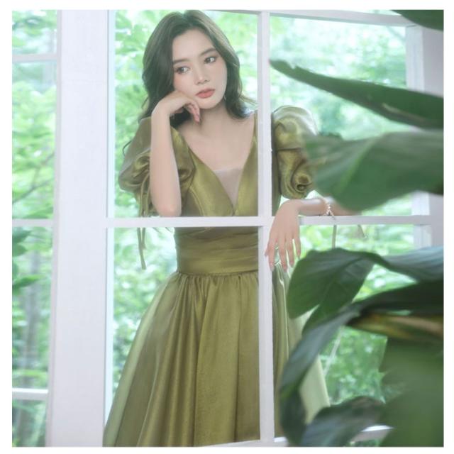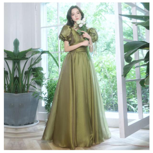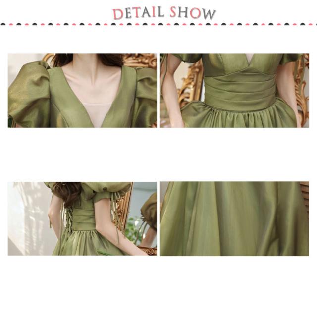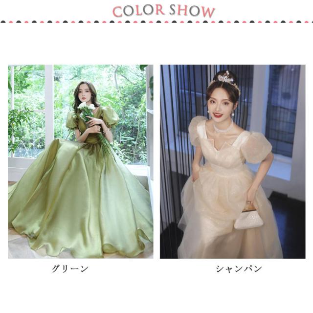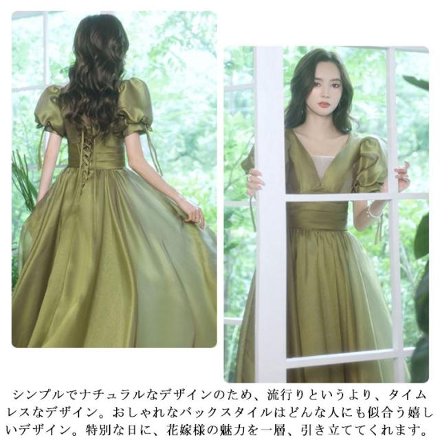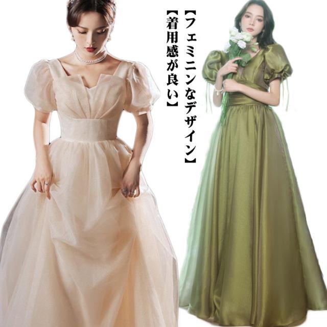 ロングドレス お嬢様 プリンセスライン ウエディングドレス お呼ばれドレス 宴会 フェミニン マキシ丈ワンピース Aラインドレス 結婚式 パーティードレス 披露宴 ピアノ 発表会 着痩せ 撮影 花嫁 演出会 演奏会 半袖ワンピース リボン セクシー 女子会 イベント 緑 ワイン