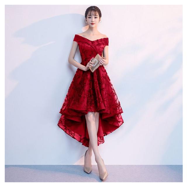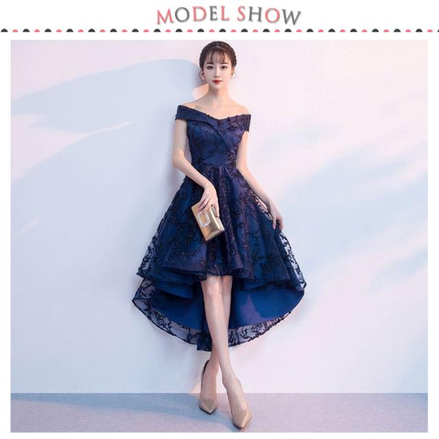 パーティードレス 安い 可愛い フィッシュテール パーティー 結婚式 披露宴 ウエディングドレス ブライダル 花嫁 ミディアム オフショルダー ネイビー ワインレッド