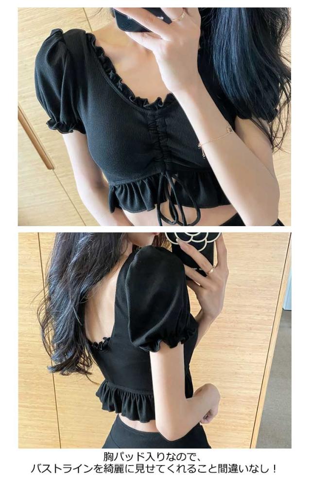 | フリルがとってもキュートで女っぽくキマる。 程良いハイウエストと、フリルのスカートで気になるお腹やお尻周りのカバー効果も期待できます。 胸パッド入りなので、バストラインを綺麗に見せてくれること間違いなし! ワイヤーが苦手な方に動いてもあたらないから、とっても快適な着心地◎ 夏場のウォータースポーツや野外活動の際、海、プールやビーチ、サーフィン、温泉、ビーチなどの様々なシーンで大活躍です。 | |