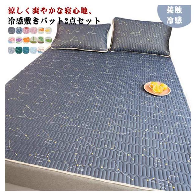 敷きパット 接触冷感 冷感 通気性 ひんやりマット 防ダニ ラテックス 敷きパッドシーツ 洗える 暑さ対策 枕カバー付き 寝具 涼感 枕カバー付き 涼しい 省エネ 2点セット
