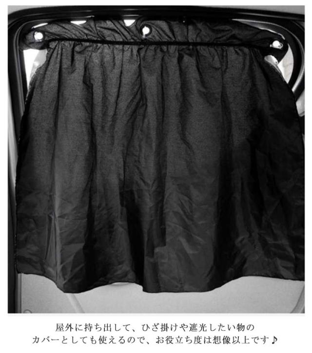 | 夏の紫外線対策に最適!取り外し簡単吸盤タイプの車用カーテン4枚セット。 吸盤で取付けるタイプで幅の調整も簡単に可能です。安全面ですべての窓は覆えませんが、支障のない後部座席などには大変強い味方! 容赦なく差し込む太陽光線のUV対策だけでなく、眩しさや熱さから同乗者を守るだけでなく、車内の目隠しとしても便利です。 屋外に持ち出して、ひざ掛けや遮光したい物のカバーとしても使えるので、お役立ち度は想像以上です♪ 車内の断熱にもなるので、エアコンの効きを良くし、車内を快適にします。 女性が気になる日焼け対策としても、駐車中の防犯・車上荒らし対策や、暑さ対策にもオススメ。 | |