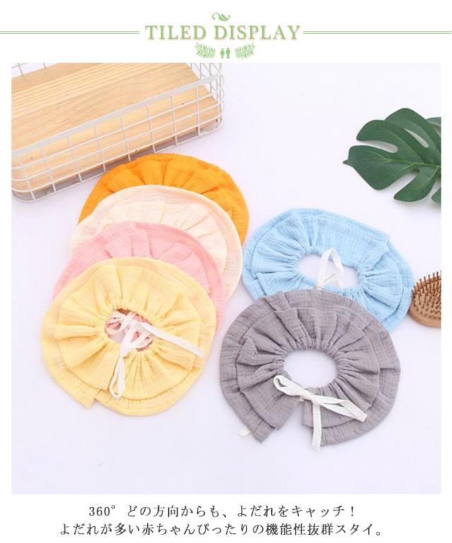 | ダブル重ねのフリルづかいがガーリーなスカラップスタイ。 360°どの方向からも、よだれをキャッチ!よだれが多い赤ちゃんぴったりの機能性抜群スタイ。 ふんわり柔らかなカーゼ素材で赤ちゃんのお肌に直接触れても安心です。 首元からすっぽり包み込んでくれるからよだれや食べこぼしをキャッチ! リボン付きで簡単にサイズ調節が可能です。 小さく折り畳めるので持ち運びにも便利でハンカチとしてもお使いいただけます。 優しいくすみカラーを採用。フリルが360°付いており、おしゃれな女の子にピッタリ! | |