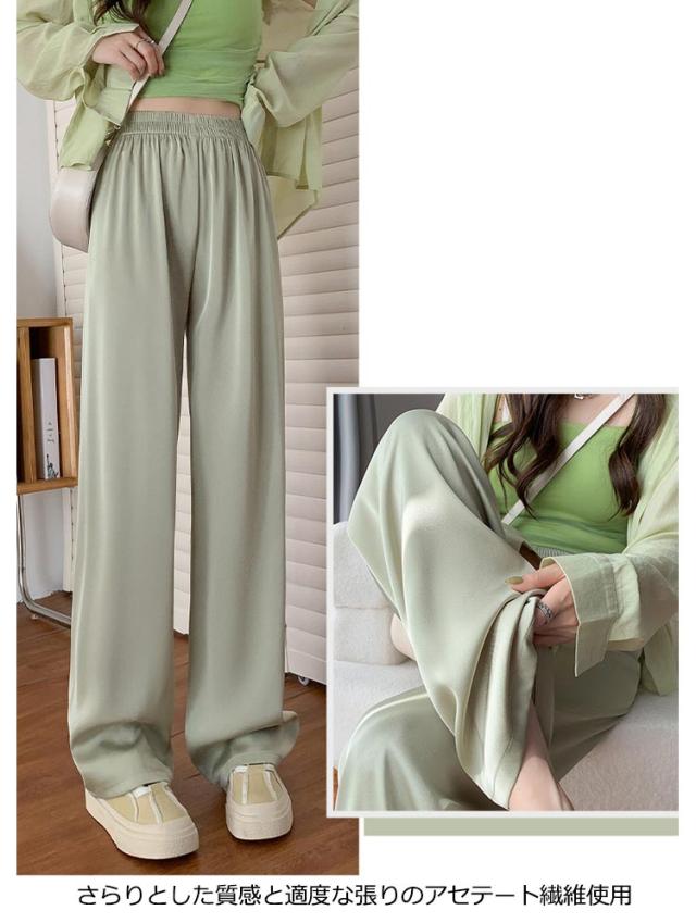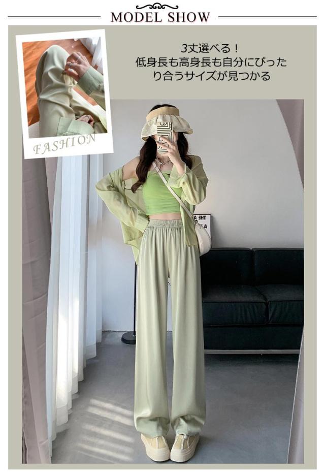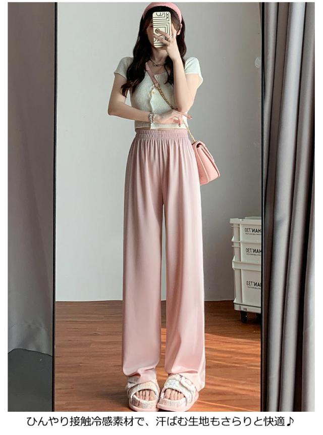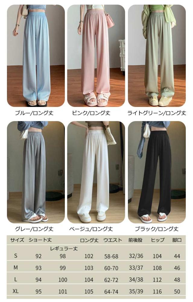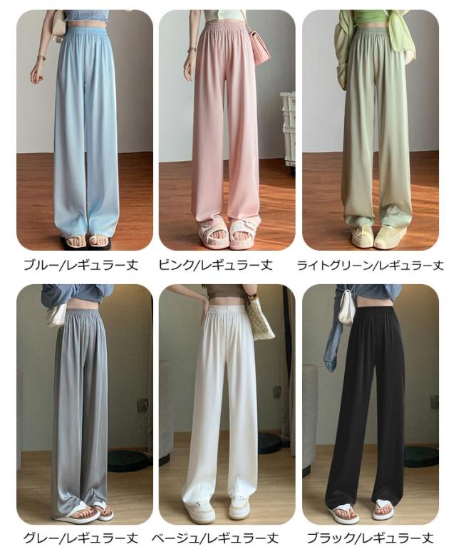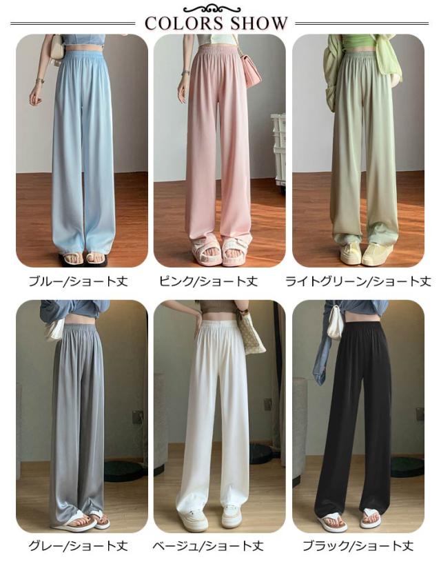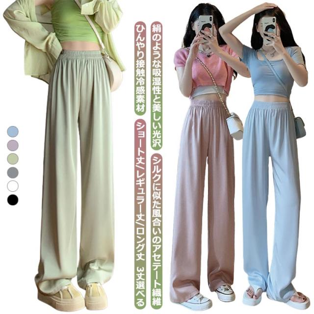 アイスシルクパンツ ストレートパンツ 9分丈 ロングパンツ 冷感 ワイドパンツ ひんやり レディース 夏服 ロングパンツ ウェストゴム カジュアルパンツ アセテートパンツ シルクタッチ 接触冷感 アセテート繊維 パンツ ショート丈/レギュラー丈/ロング丈