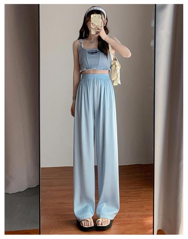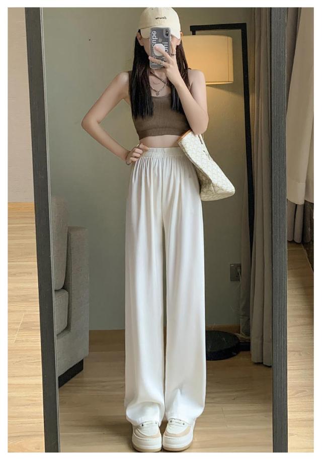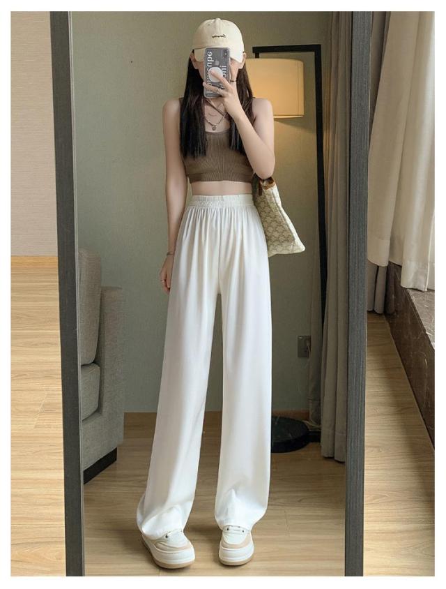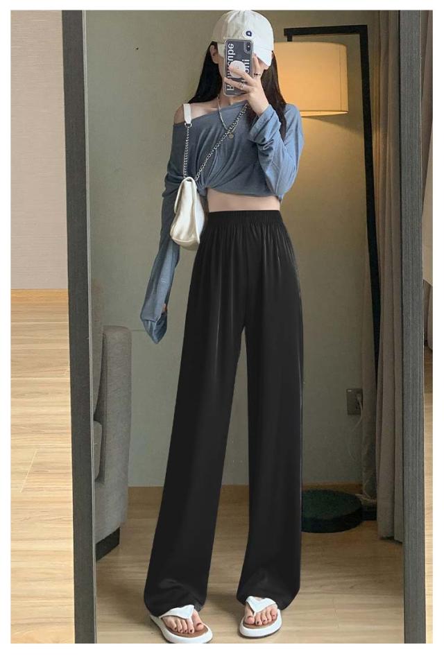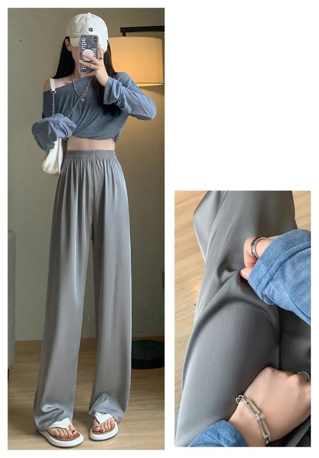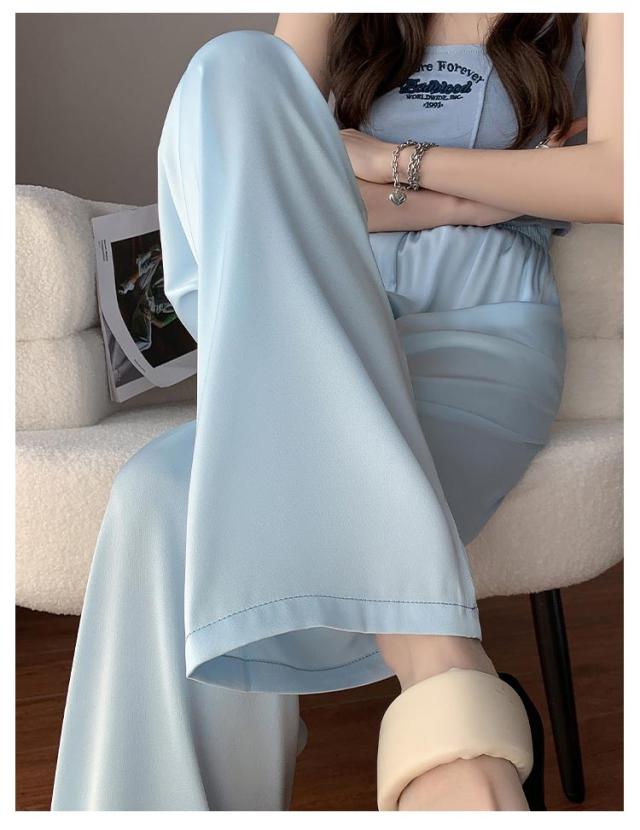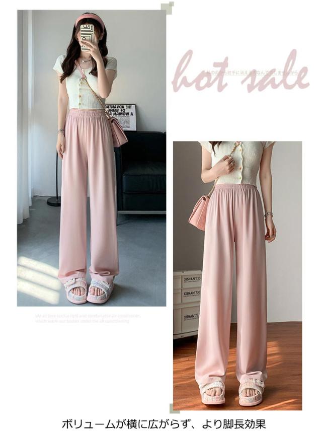アイスシルクパンツ ストレートパンツ 9分丈 ロングパンツ 冷感 ワイドパンツ ひんやり レディース 夏服 ロングパンツ ウェストゴム カジュアルパンツ アセテートパンツ シルクタッチ 接触冷感 アセテート繊維 パンツ ショート丈/レギュラー丈/ロング丈