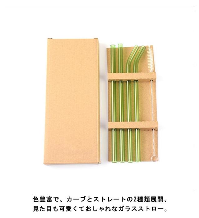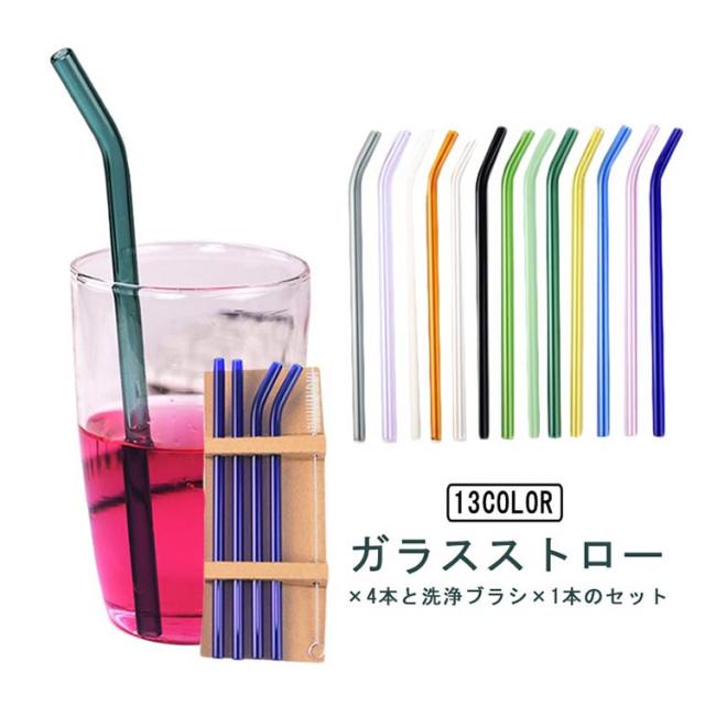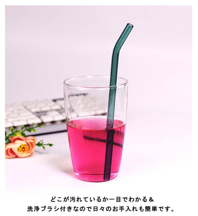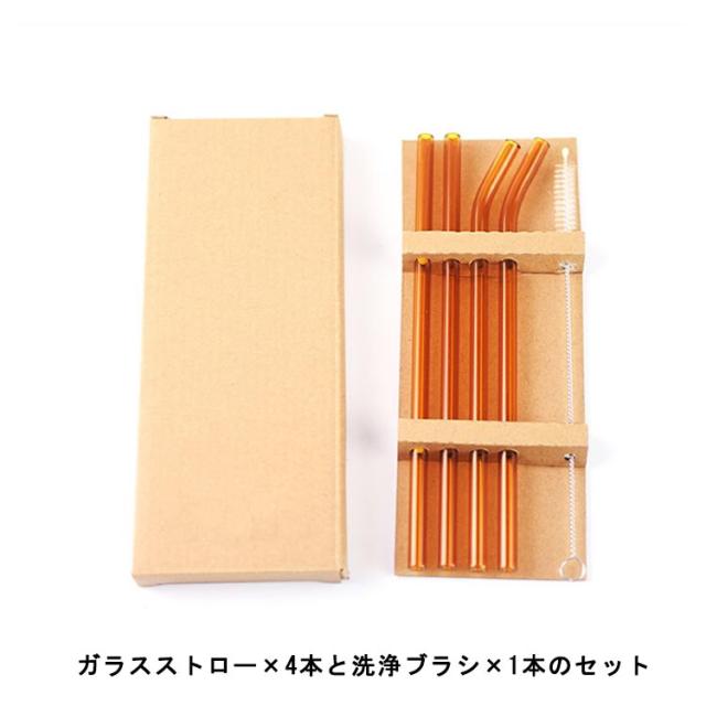 ガラスストロー 洗浄ブラシ セット ストロー 4本セット カーブ ストレート 洗浄ブラシ付き マイストロー 耐熱ガラス ドリンクストロー 来客用 普段 インテリア おしゃれ エコ 繰り返し 透明 クリア まとめ買い 父の日 プレゼント 実用的