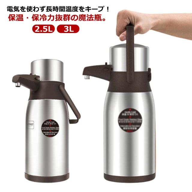 保冷保温 ポット 卓上ポット 保温 ステンレス 大容量 コードレス 事務所 魔法瓶ポット 魔法瓶 北欧 ギフト 卓上 エアーポット 家庭用 保冷 取っ手付き テーブルポット まほうびん 押すだけ 持ち手 おしゃれ かわいい 2.5L 3L 敬老の日 引っ越し祝い おしゃれ