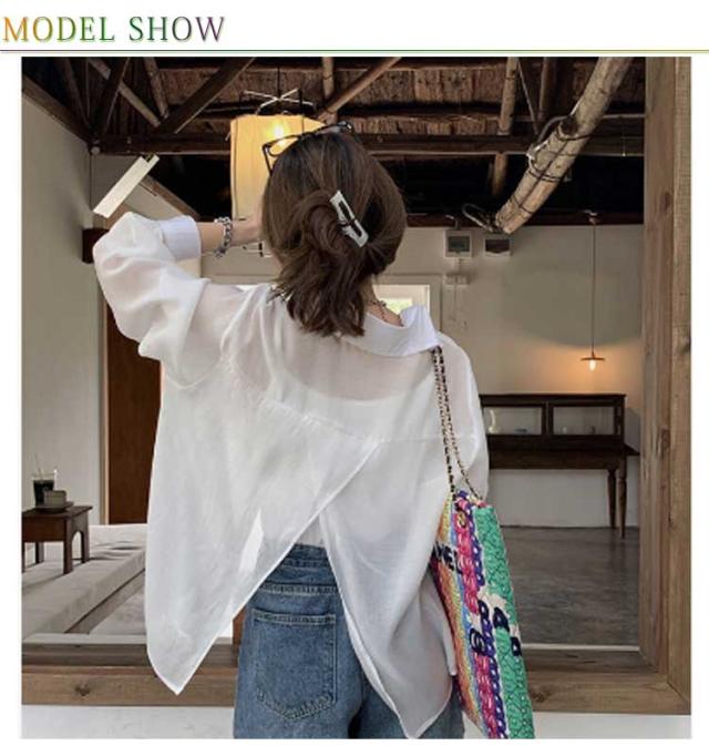 送料無料 バックスリット シアーシャツ レディース ロングシャツ かわいい 長袖シャツ 春夏 トップス 透け感 シアートップス シャツ 春服 夏服 大きいサイズ S M L XL 2XL 3XL