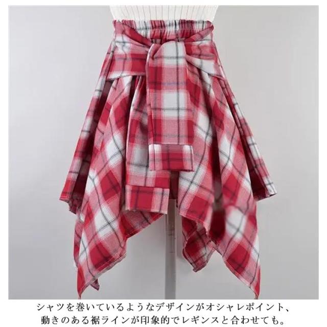 | カジュアルなチェック柄で腰巻スタイル風のスカートです。 シャツを巻いているようなデザインがオシャレポイント、動きのある裾ラインが印象的でレギンスと合わせても。 ウエストはゴム仕様で履き心地も楽々です。 腰まわりのボリュームスカートで美脚を引き立たせます、チェックのシャツを巻いたような腰巻風スカートがポイント! 袖部分を前で結ぶのもよし、結ばずにそのままおろしても素敵。 カジュアルで可愛いコーデにしたい時はコレに決まり! | |