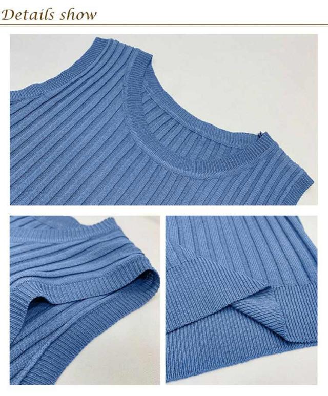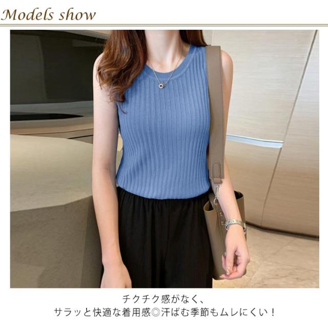 送料無料 サマーニット ノースリーブ リブニット レディース タンクトップ ニット tシャツノースリーブ カットソー Uネック 袖なし シンプル きれいめ カジュアル おしゃれ セクシー かわいい 通勤 オフィス