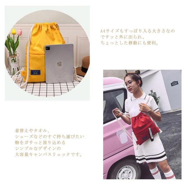 ジムサック ナップサック キャンバスバッグ エコバッグ リュックサック カバン 鞄 かばん 中学生 小学生 アウトドア 韓国ファション 折たたみ コンパクト 携帯用 バックパック 通学 通勤 サブバッグ 無地 カジュアル シンプル 可愛い 送料無料