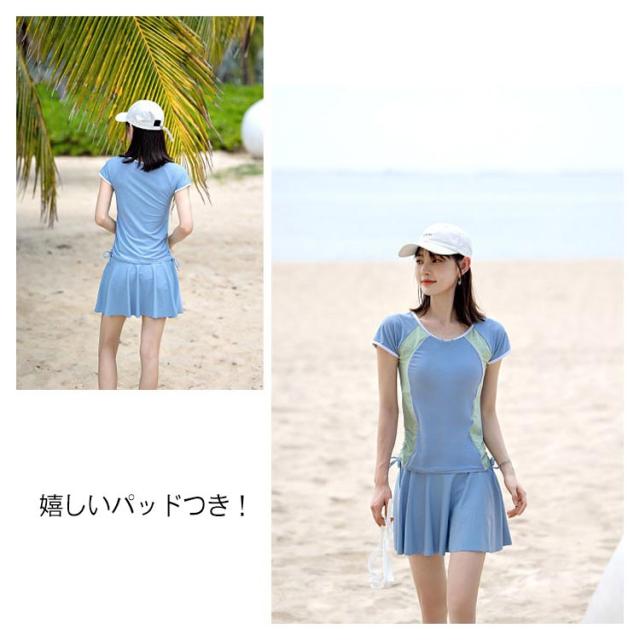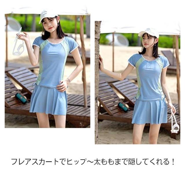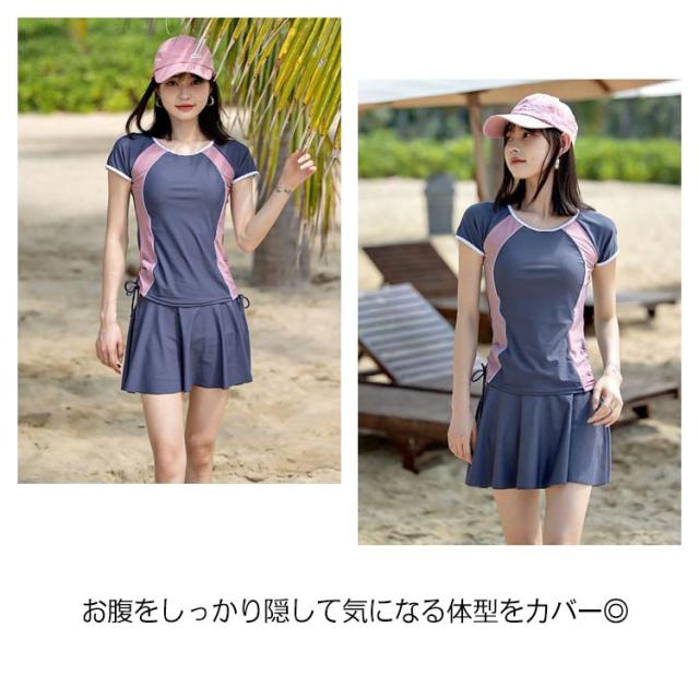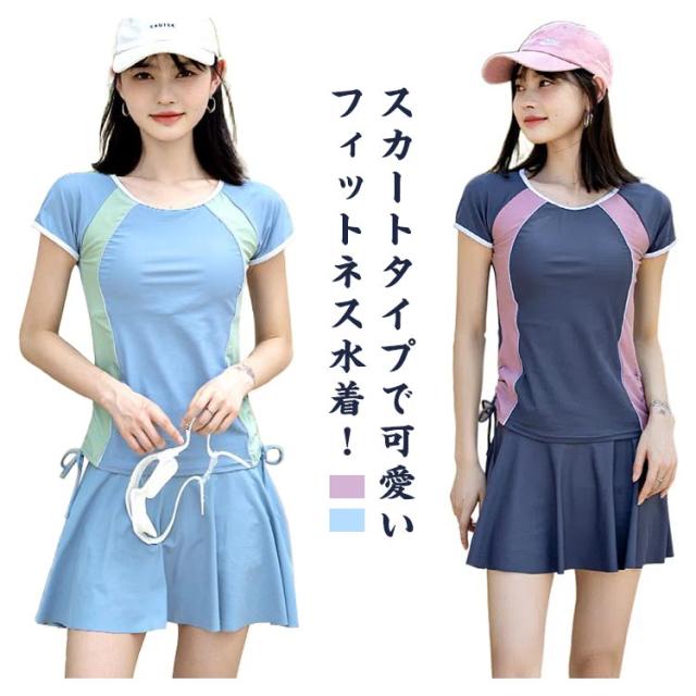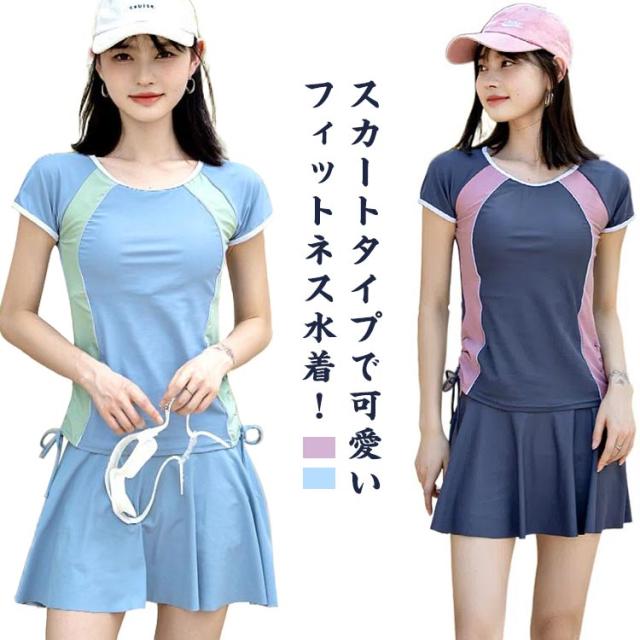 2点上下セット フィットネス水着 レディース セパレート スポーツ 水着 かわいい 送料無料 ママ水着 オトナ女子 露出控えめ 半袖 スカート スポーツウェア ショートパンツ フレアスカート 体型カバー 海水浴 20代 30代 40代