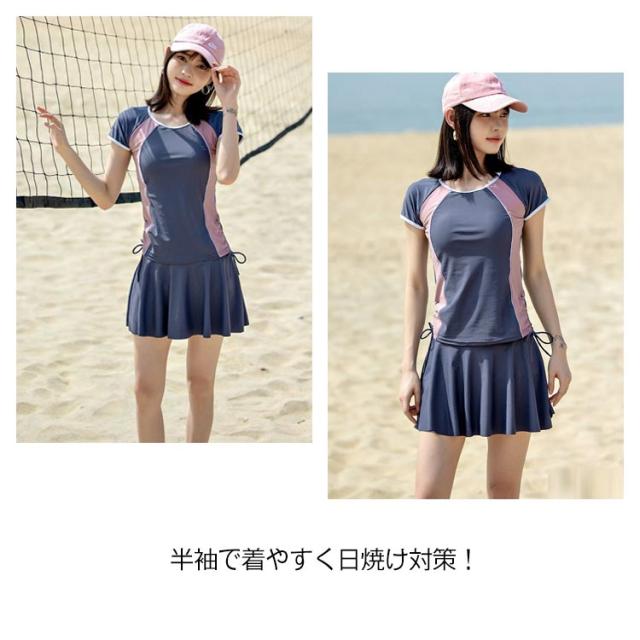 | スカートタイプで可愛いフィットネス水着! 両サイドギャザーで絞れて可愛くアレンジOK♪ 半袖で着やすく日焼け対策! お腹をしっかり隠して気になる体型をカバー◎ フレアスカートでヒップ〜太ももまで隠してくれる! 嬉しいパッドつき! | |