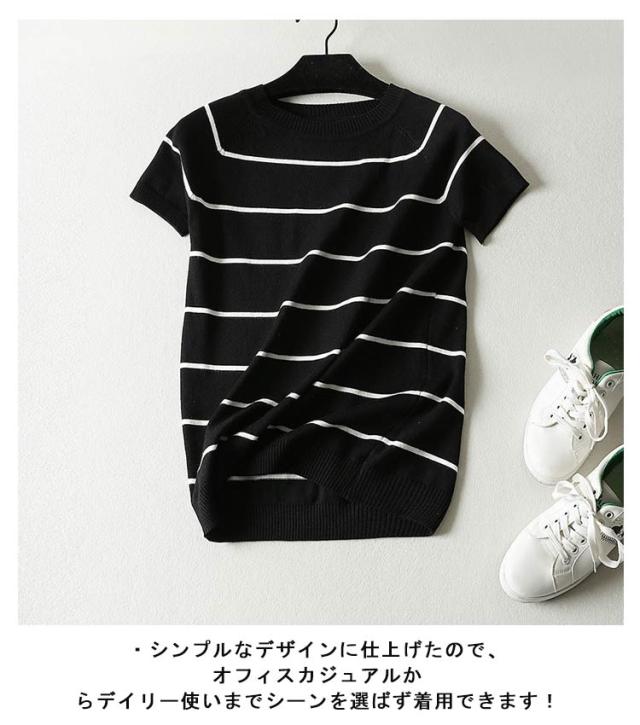 ニット Tシャツ 半袖 オフィス トップス サマーニット レディース セーター カットソー カジュアル オフィス 女性 春夏 ボーダー