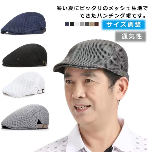 ハンチング 帽子 メンズ キャスケット メッシュハット 夏 ゴルフ帽子 送料無料 おしゃれ アジャスター付き サイズ調整 無地 日よけ帽子 通気性 釣り テニス 登山 トレッキング ウォーキング
