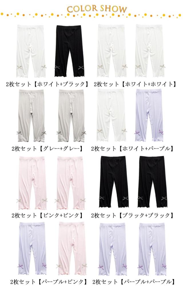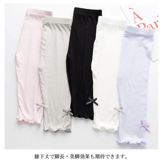 2枚セット スパッツ 子供 女の子 夏 七分丈 可愛い フリル リボン付き レギンス キッズ ガールズ 柔らかい ストレッチパンツ 快適 ボトムス 短パン 通園 通学 100-160cm 子供服 レギンス ウエストゴム 7分丈
