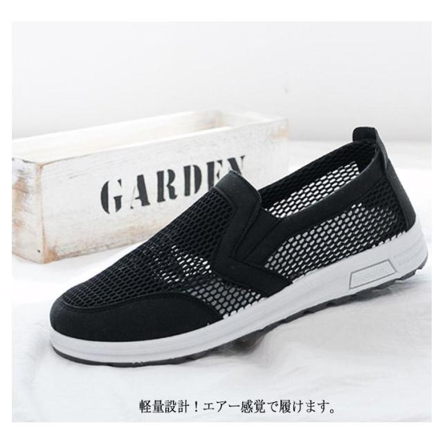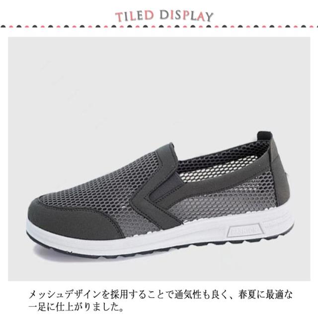 | シンプルで履きやすいおしゃれなカジュアルスリッポンシューズ。 メッシュデザインを採用することで通気性も良く、春夏に最適な一足に仕上がりました。 軽量で動きやすく様々なシーンでご使用いただけます。 踵を踏んでサボサンダル風にも履ける便利なスリッポンタイプシューズでアッパー部分はメッシュ素材で通気性バツグン! スリッポンタイプなので脱ぎ履きもラクチン! おまけにアウトソールは全方向に曲がって動きやすい構造 軽量設計!エアー感覚で履けます。 | |