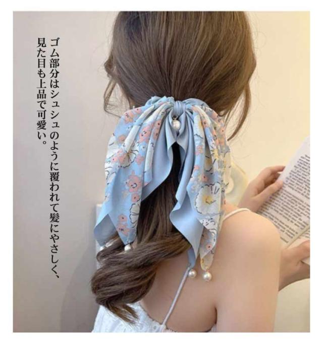 送料無料 シュシュ リボン スカーフ柄 ヘアアクセサリー ヘアゴム ヘアアクセ ヘアアレンジ 髪飾り 髪留め 大人っぽい かわいい ヘアポニー シュシュ 簡単 アレンジ 大人 おしゃれ