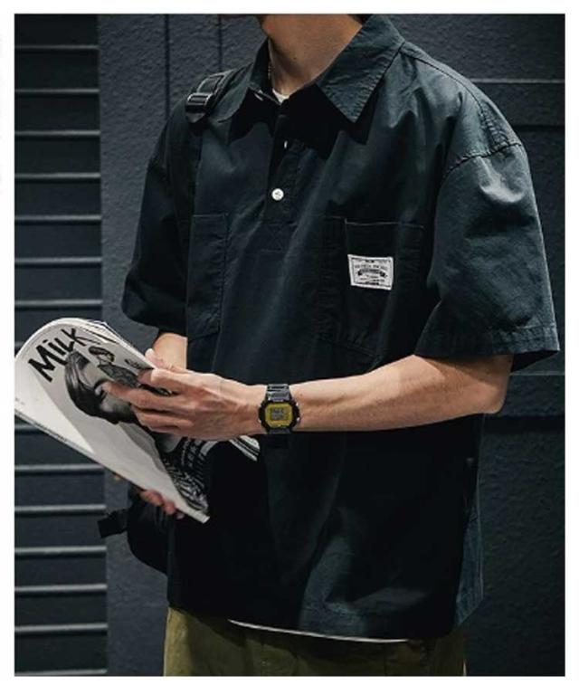 | かっこいいアメカジ風ポロシャツ。 ゆったり、スタイリッシュなイメージに仕上がります。 春夏シーズンに大活躍してくれる一着となります。 カジュアルにもクールにも決まる1着です。 | |