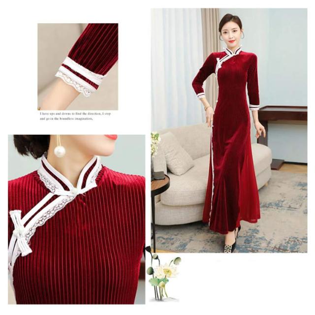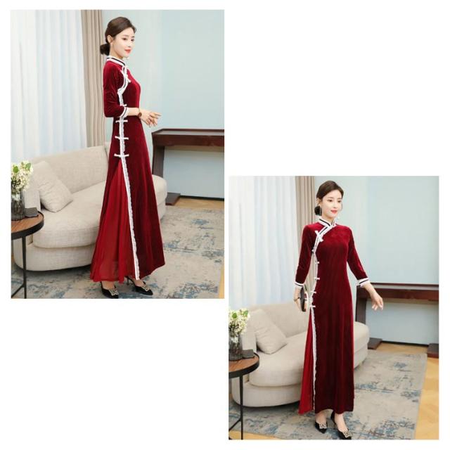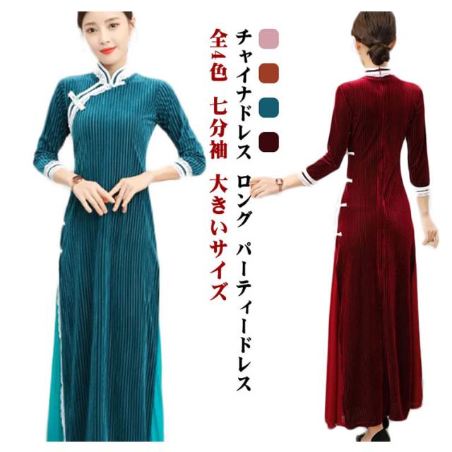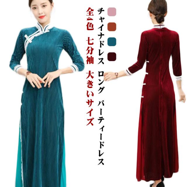 チャイナ服 チャイナドレス ロング パーティードレス ワンピース レディース 七分袖 着やせ 気質 チャイナ 20代 30代 40代 きれいめ 春夏 大きいサイズ 全4色 送料無料