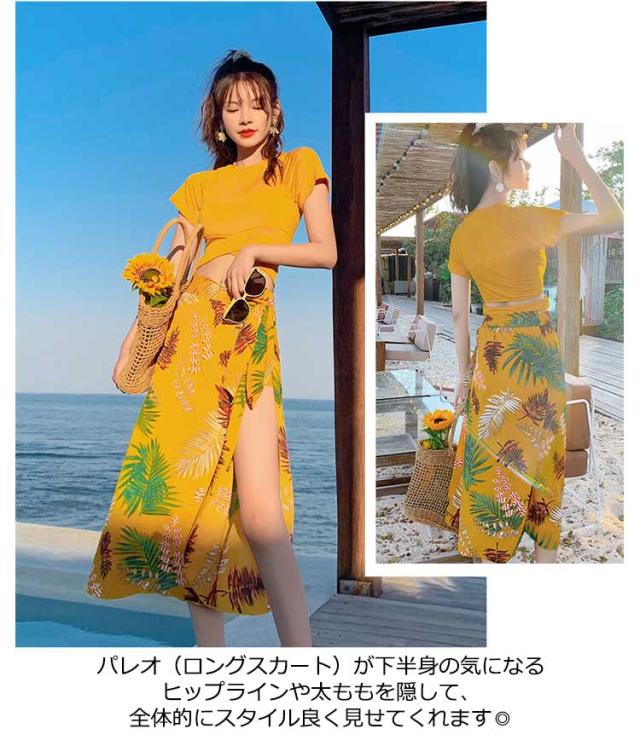 | トップス、ショートパンツ、パレオ(ロングスカート)の3点セットとなっております。 取り外し可能なインナーパッド が付いております。 トップスはカットソータイプとなっており、気になる二の腕もカバー◎ ウエストのクロスデザインで、ウエストが細く見えます◎ パレオ(ロングスカート)が下半身の気になるヒップラインや太ももを隠して、全体的にスタイル良く見せてくれます◎ 海水浴やプール、ビーチ、温泉、スパ、国内/海外旅行など、いろいろなところで大活躍してくれる水着です◎ | |