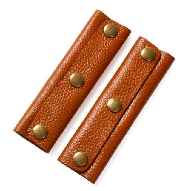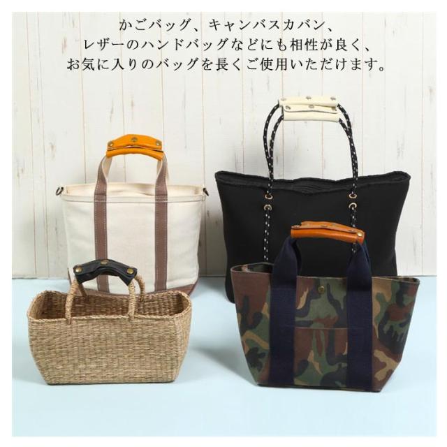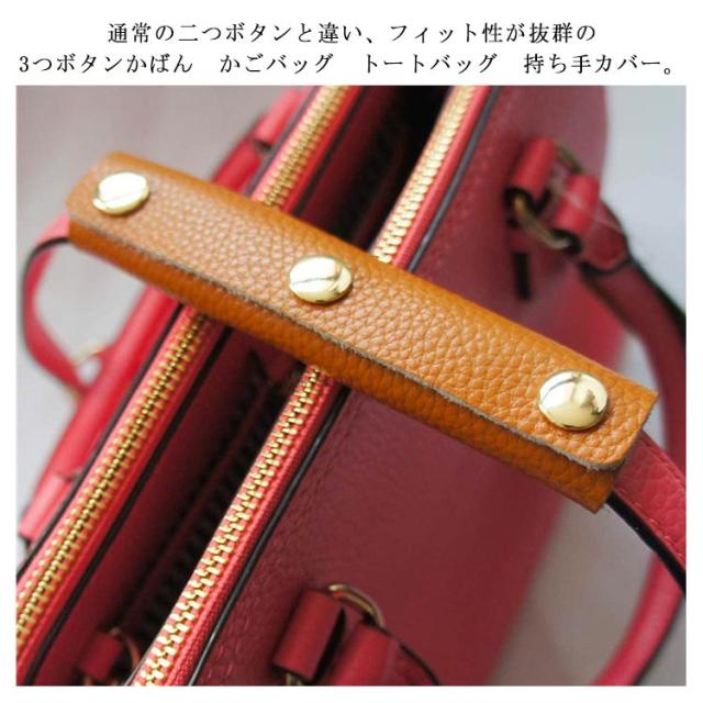 | 鞄の持ち手を汚さずにバッグが長持ちできるハンドルカバー。 通常の二つボタンと違い、フィット性が抜群の3つボタンかばん かごバッグ トートバッグ 持ち手カバー。 持ち手部分特有の擦れや汚れなどの解消、またはダメージを受けてしまったバッグのリペアに役立ちます。 柔らかく丈夫なレザーで、肌触りもよく、長時間の使用でも手のひらが痛くなる事はありません。 かごバッグ、キャンバスカバン、レザーのハンドバッグなどにも相性が良く、お気に入りのバッグを長くご使用いただけます。 2枚組なので両方の持ち手に付けるも良し、2つの持ち手を一つにまとめるも良しで使い勝手も良いです。 | |
