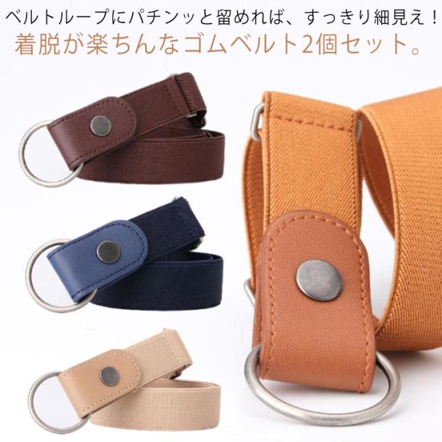 送料無料 ゴムベルト 楽ちん レディース ゴム メンズ ベルト 2個セット ノーバックル ベルト バックルなし サイズ調整簡単 ループ ストレッチ 大きめ リラックス すっきり 楽々 かわいい