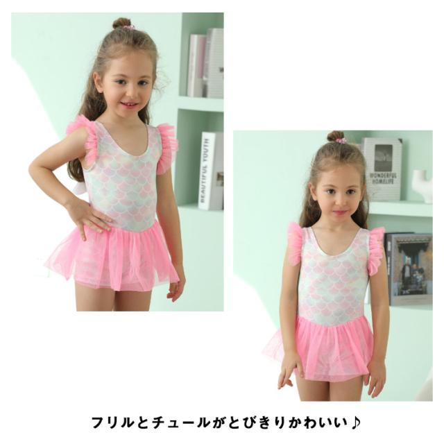 キッズ 水着 マーメイド 人魚姫 子供水着 天使の羽 エンジェル 女の子 ワンピース 水着 パンツ一体型 チュール 女の子 水着 マーメイド 人魚 水着 オールインワン 一体型 魚の鱗 水着 ベビー 水着 送料無料