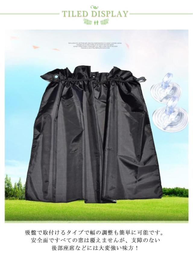 | 夏の紫外線対策に最適!取り外し簡単吸盤タイプの車用カーテン4枚セット。 吸盤で取付けるタイプで幅の調整も簡単に可能です。安全面ですべての窓は覆えませんが、支障のない後部座席などには大変強い味方! 容赦なく差し込む太陽光線のUV対策だけでなく、眩しさや熱さから同乗者を守るだけでなく、車内の目隠しとしても便利です。 屋外に持ち出して、ひざ掛けや遮光したい物のカバーとしても使えるので、お役立ち度は想像以上です♪ 車内の断熱にもなるので、エアコンの効きを良くし、車内を快適にします。 女性が気になる日焼け対策としても、駐車中の防犯・車上荒らし対策や、暑さ対策にもオススメ。 | |