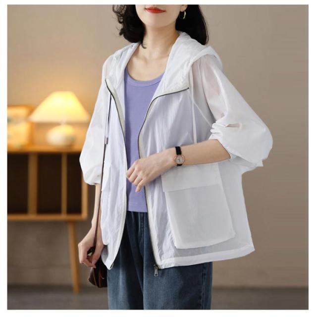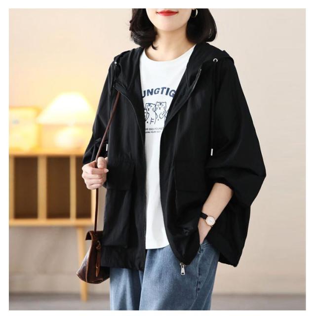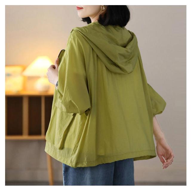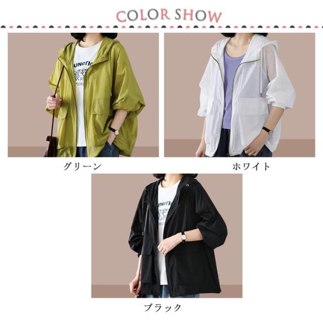 ジップアップパーカー レディース トップス パーカ アウター フード 羽織り UVカット ゆったり 薄手 夏 体型カバー かわいい カジュアル きれいめ 紫外線対策 冷房対策 ビッグシルエット M-3XL 送料無料