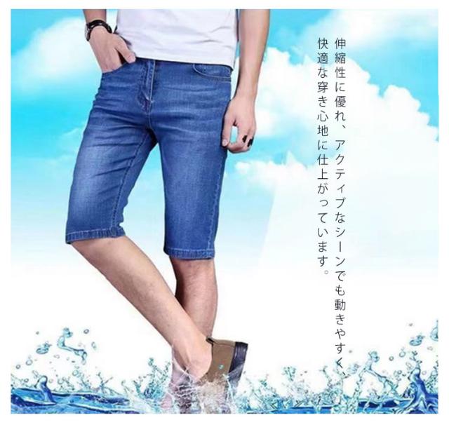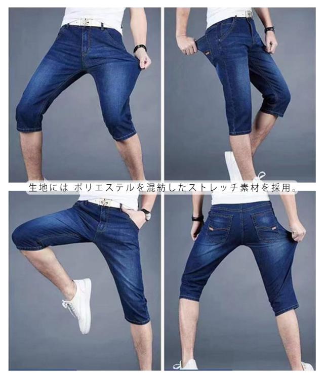 ハーフパンツ メンズ ひざ下 デニムパンツ クロップドパンツ 接触冷感 ショートパンツ デニム ボトムス 冷感 ストレッチ 7分丈 ジーンズ 短パン 半パンツ 五分丈 スポーツ 春夏 送料無料 ひんやり 涼しい 大きいサイズ カジュアル ストレッチ 薄手 速乾 お洒落 ゆったり