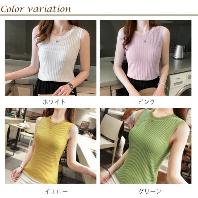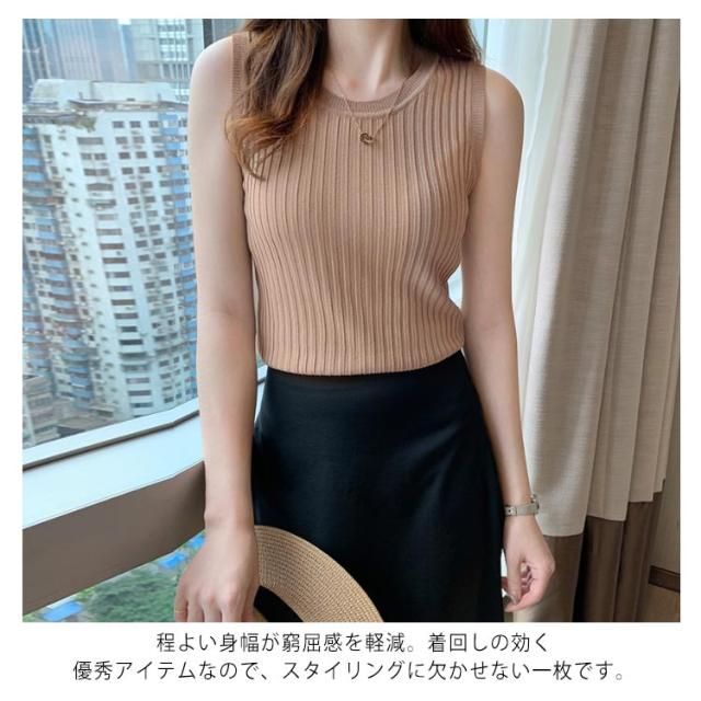 送料無料 サマーニット ノースリーブ リブニット レディース タンクトップ ニット tシャツノースリーブ カットソー Uネック 袖なし シンプル きれいめ カジュアル おしゃれ セクシー かわいい 通勤 オフィス