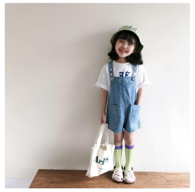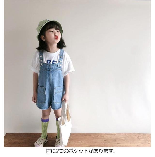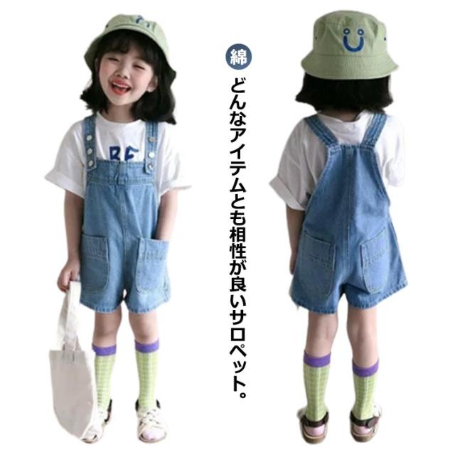 キッズ サロペット デニム 子供服 オーバーオール ショートパンツ 春 夏 ズボン つなぎ ボトムス ベビー服 送料無料 かわいい シンプル カジュアル 涼しい 短パン 吊りパンツ 韓国