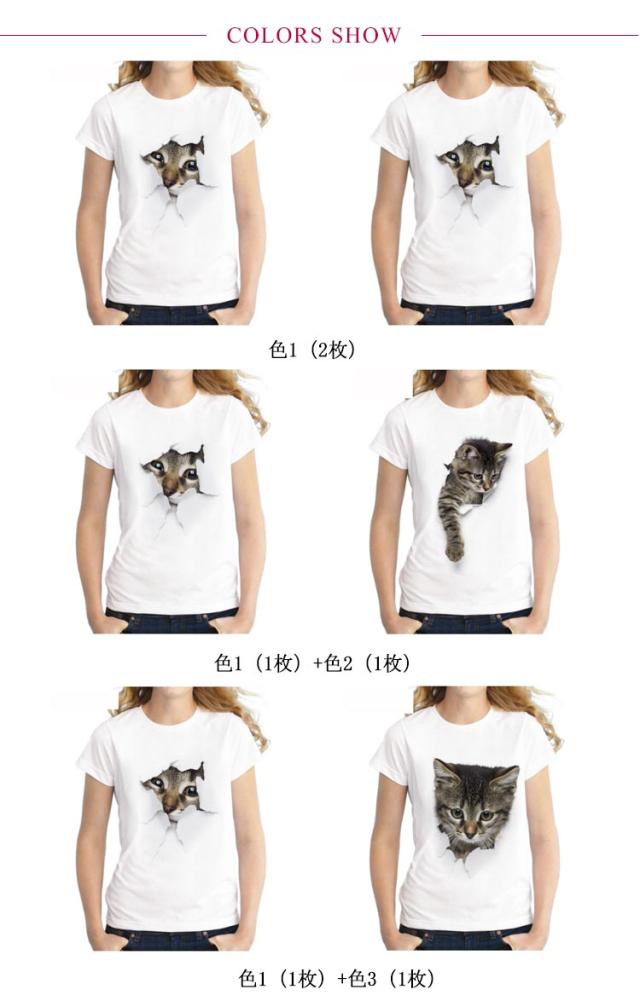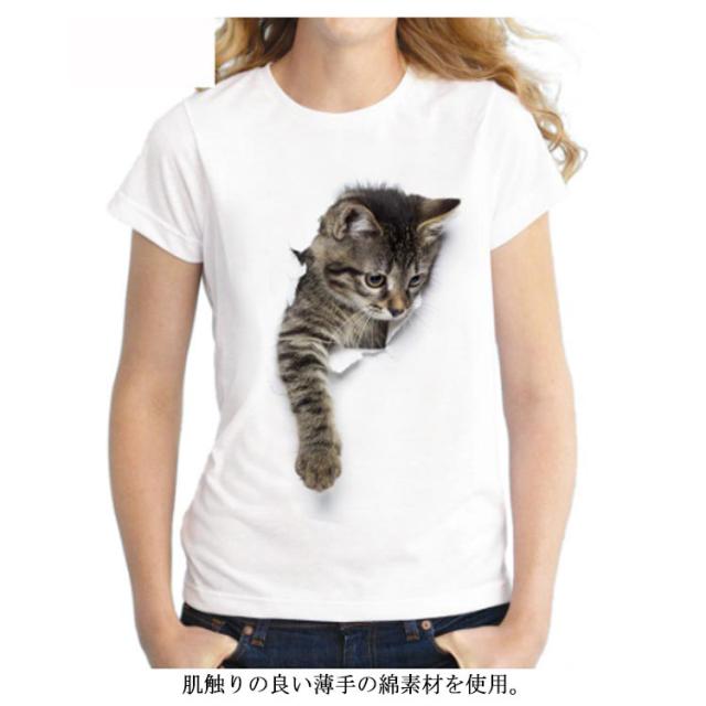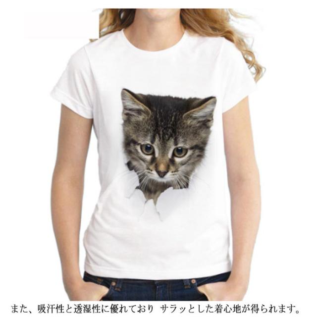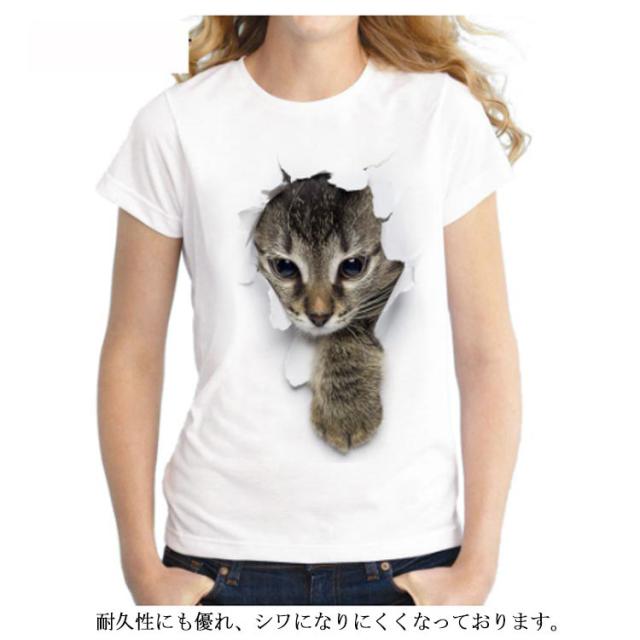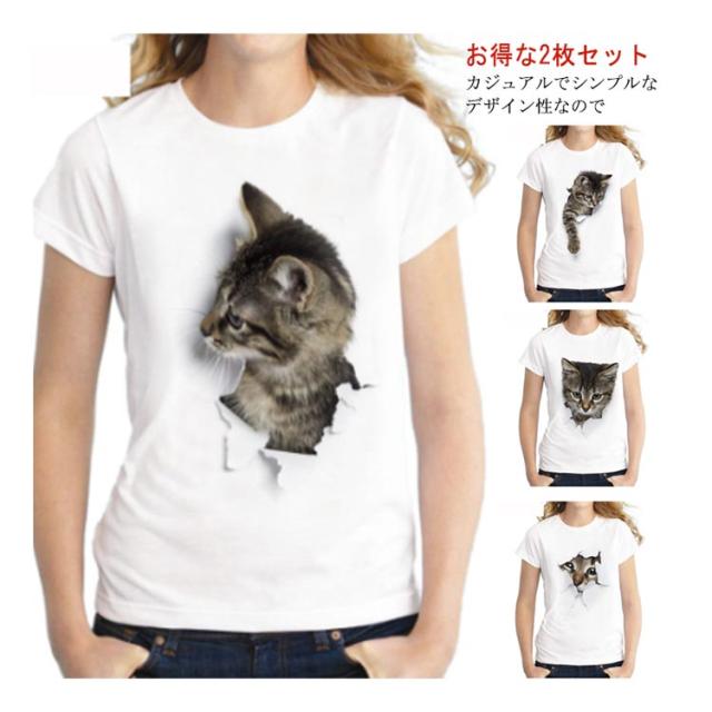 可愛い 3D 猫 Tシャツ 半袖 メンズ レディース 男女兼用 レディースTシャツ 白 メンズtシャツ 2枚セット 半袖 3D 立体 Tシャツ おもしろ 面白 レディース ねこ レディースTシャツ かわいい 送料無料