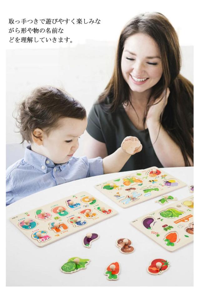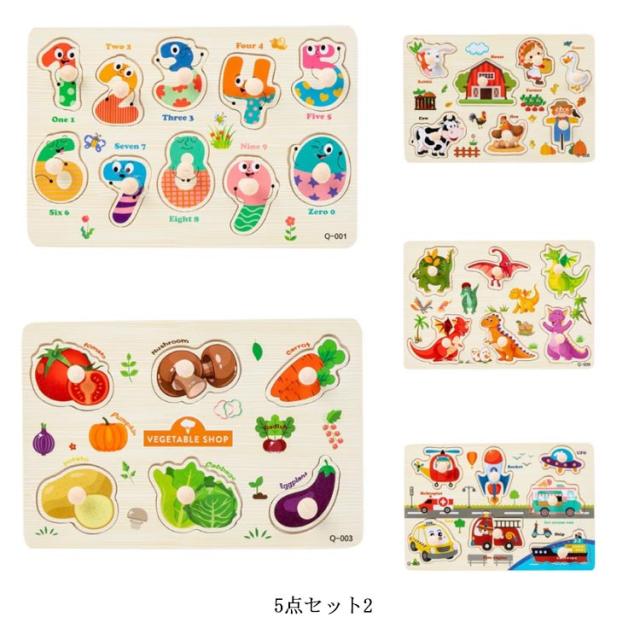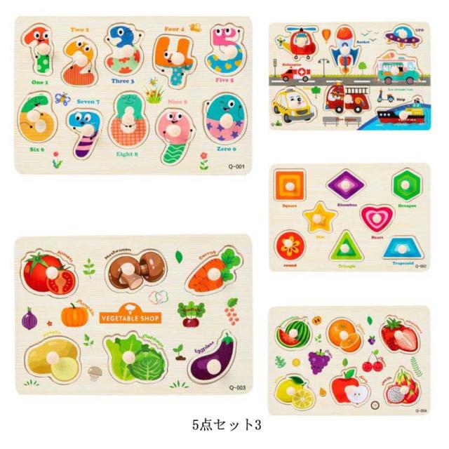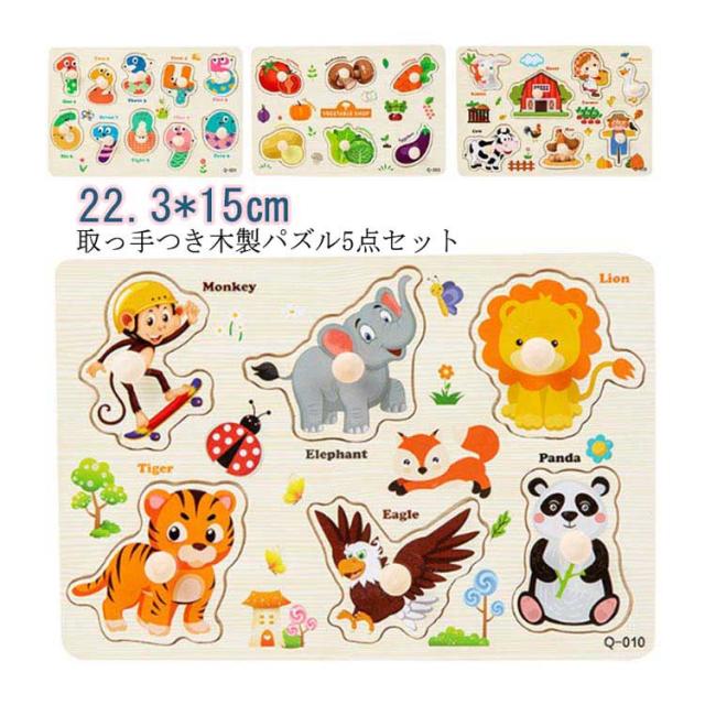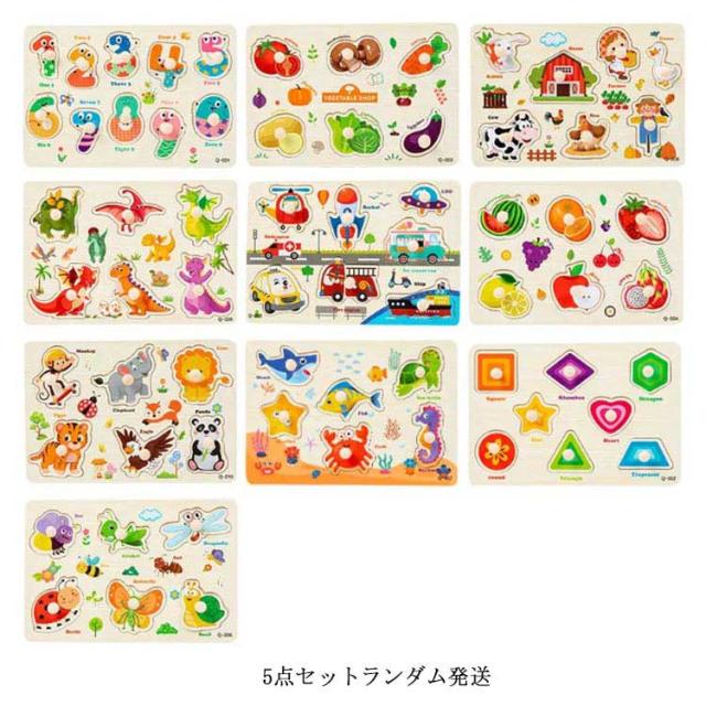 型はめパズル 5点セット 木のおもちゃ 木製パズル ベビー 子供 木のパズル 取っ手付き 立体パズル ペグパズル 知育玩具 木製玩具 知育パズル 赤ちゃん 果物 動物 数字 英語 男の子 女の子 幼児 知育おもちゃ