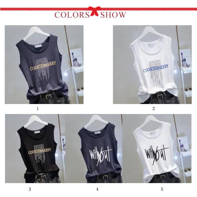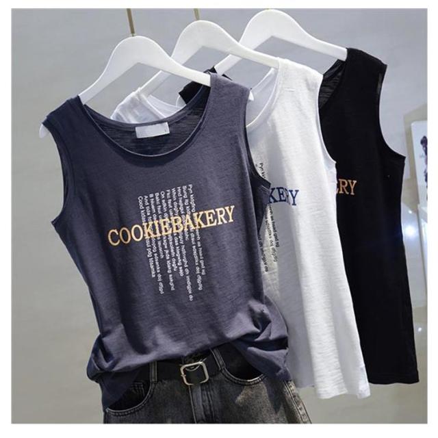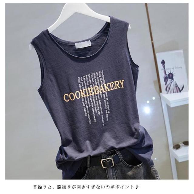 タンクトップ レディース 100%綿 カジュアル ノースリーブ プリント 無地 韓国風 トップス 丸襟 ストリート系 重ね着 夏 通気性 通勤 シンプル カットソー インナー 可愛い 体型カバー コーデ レイヤード M-4XL 送料無料