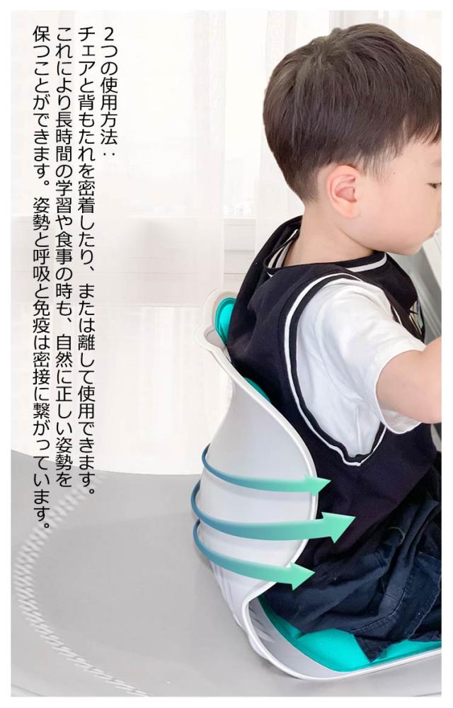 | てこの原理を利用した高弾力素材の姿勢のサポートで家庭や学校など、長時間座って学習する時にも正しい姿勢を促し、健やかな成長のサポートをします。 人体工学を考えた高弾力素材のクッションが骨盤を押し上げ正しい姿勢を作ります。 最大150Kgにも耐える高弾力素材の背もたれが、背骨を効果的に支えるので自然に正しい姿勢を保ちます。福祉道具承認済みです。 2つの使用方法:チェアと背もたれを密着したり、または離して使用できます。これにより長時間の学習や食事の時も、自然に正しい姿勢を保つことができます。姿勢と呼吸と免疫は密接に繋がっています。 側地はポリエステル100%さらっと滑らかな触り心地で優しく柔らかい肌触りで腰に密着し、快適さと衛生面を一挙に解決します。また、クッションは通気性があり体熱と汗を円滑に循環させて長時間座っていてもさらりと快適さが続きます。汚れを落とす場合は薄めた中性洗剤を使用してください。 クッション材には、ウレタンを使用。弾力性に優れ、もちもちとした感触が腰とお尻を包みます。 背もたれにはハンドルがついており持ち運びが簡単です。学校や公園、ベッドやソファ、床や屋外など必要時にどこでも設置することができます。大切なお子様やお孫様のギフトやプレゼントにも喜ばれています。 | |