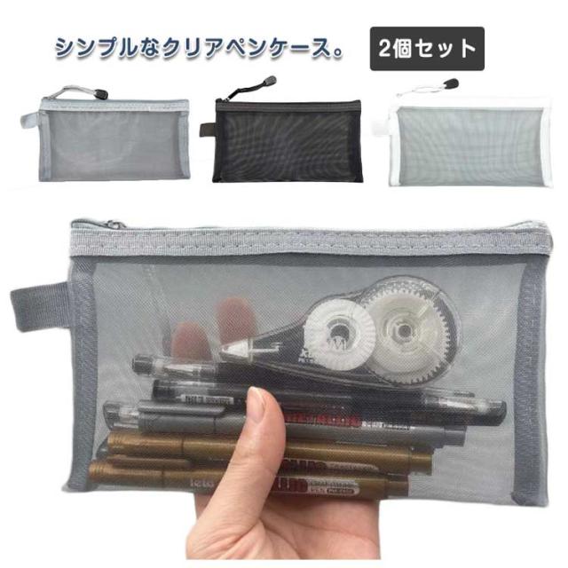 ペンケース 2個セット 透明 送料無料 高校生 女子 シンプル クリアペンケース メッシュ 筆箱 かわいい 中学生 大学生 高校生 男子 無地 クリア ペンポーチ 小物入れ コスメポーチ 収納ポーチ 軽量 おしゃれ メッシュケース