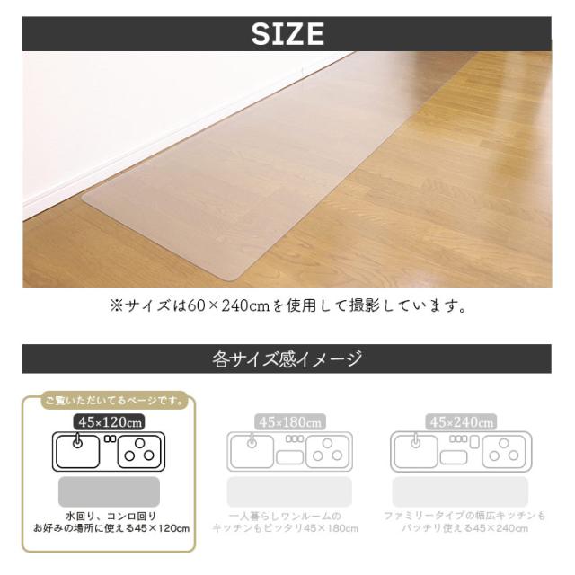 PVCクリアキッチンマット 45×120 抗菌 抗カビ 45×120cm 西海岸 カーペット 厚手 台所 キッチン 北欧 秋 冬 クリア 透明