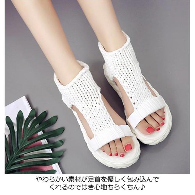 | 街で、旅先で、海やプールで、リゾートで、様々なシーンでお使いいただけるサンダルです。 厚底なのでビーチでもOK。 やわらかい素材が足首を優しく包み込んでくれるのではき心地もらくちん♪ 足首は締め付けすぎないホールド感。とても歩きやすいので、長く歩いても疲れません。 編み糸はTシャツ生地!だから蒸れない!肌ざわりがよくて気持ちいい◎ | |
