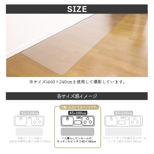 PVCクリアキッチンマット 45×180 抗菌 抗カビ 45×180cm 西海岸 カーペット 厚手 台所 キッチン 北欧 秋 冬 クリア 透明