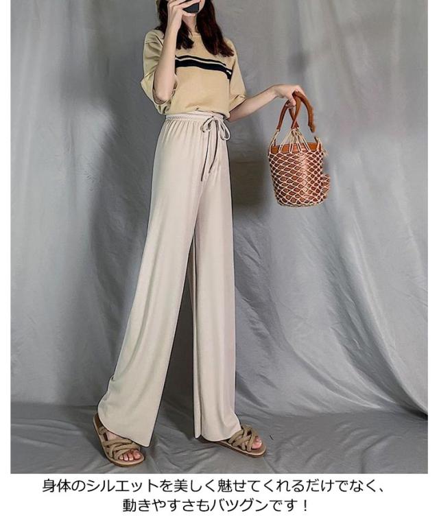 冷感 ロングパンツ ワイドパンツ レディース ガウチョパンツ 九分丈パンツ 無地パンツ ロング丈 九分丈 ヨガパンツ リラックスパンツ ダンスパンツ ゆったり 落ち感 さらさら お洒落 キレイめ カジュアル ボトムス 美脚 脚長 春 夏 秋 新作 送料無料