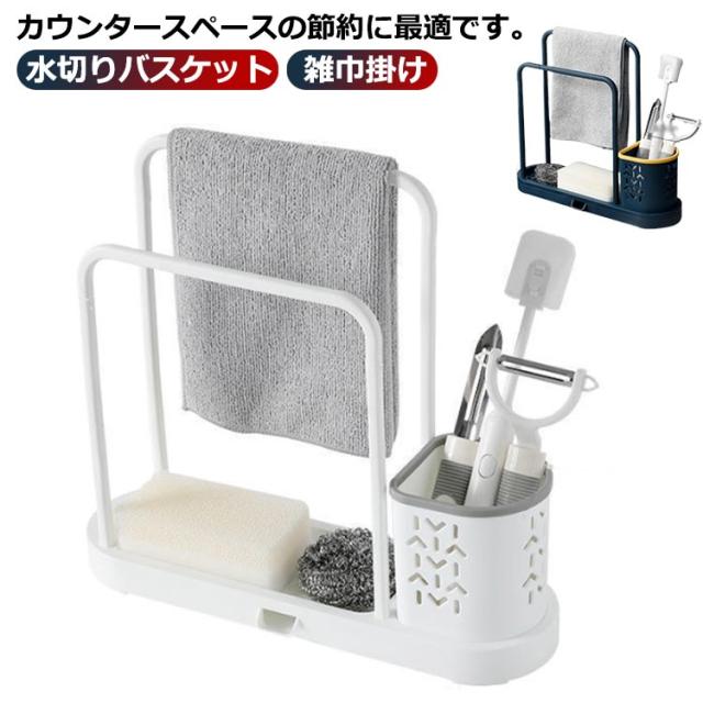 水切りバスケット 水切りかご スリム 収納 雑巾 雑巾掛け シンク上 ぞうきん シンクバスケット 水切りカゴ ディッシュラック シンクラック シンプル キッチン雑貨 水が流れる 水切り コンパクト