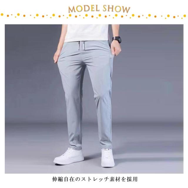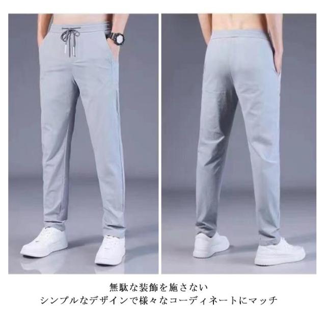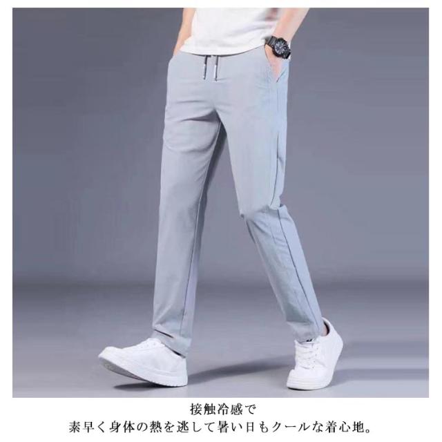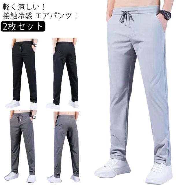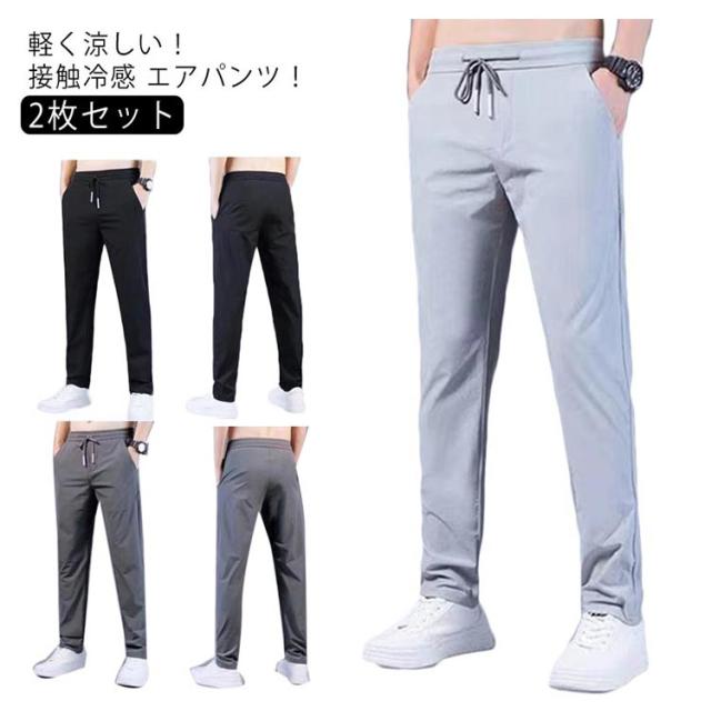 2枚セット アイス シルク パンツ メンズ 接触冷感 スキニーパンツ 冷感パンツ 大きいサイズ 夏 ストレッチ 伸縮 涼しい 吸水速乾 ズボン ゴルフパンツ ゴルフウェア アイスシルクパンツ ロングパンツ スポーツパンツ 無地 軽量 薄手 通気 ストレートパンツ 送料無料