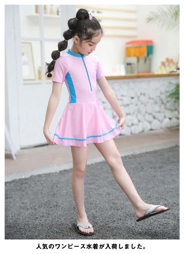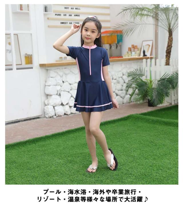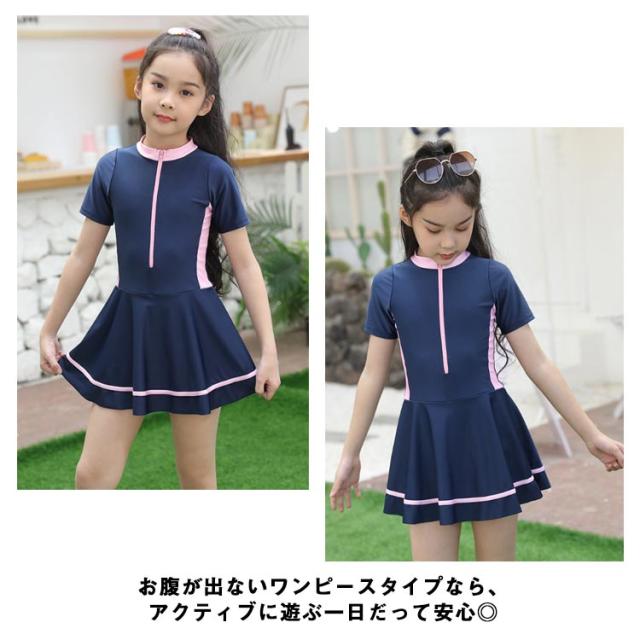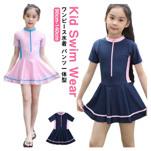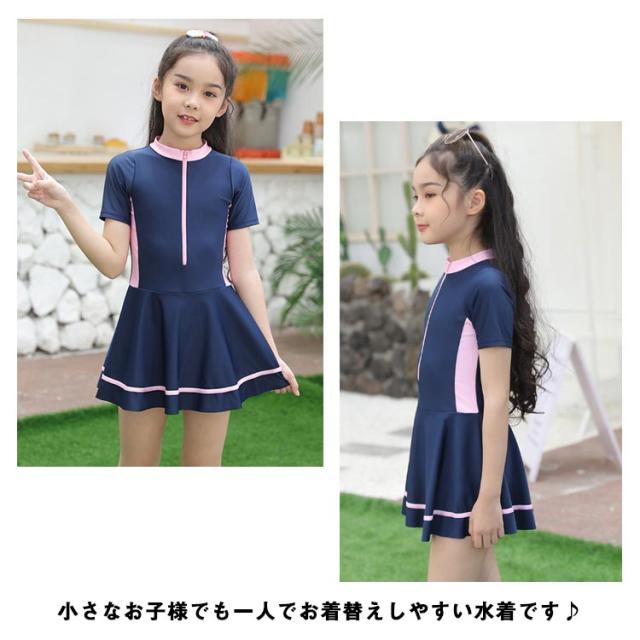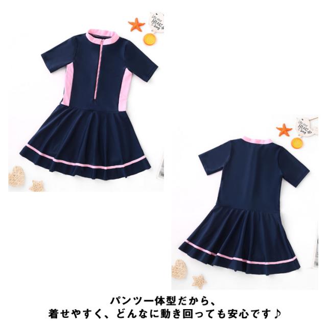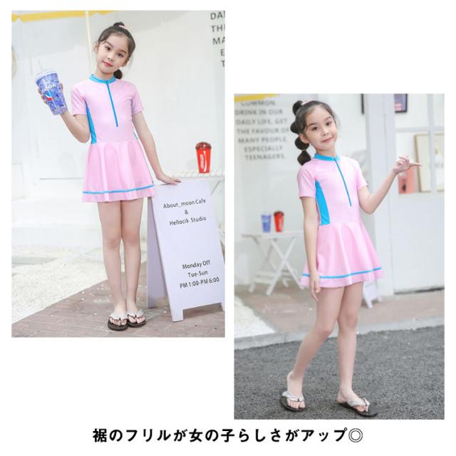 キッズ 子供 水着 女の子 ワンピース 水着 パンツ一体型 オールインワン 一体型 ジュニア 水着 ワンピース 女の子 水着 ワンピース 半袖 前開き スイムウェア 女児水着 キッズ ワンピース 水着 フリル スクール水着 送料無料